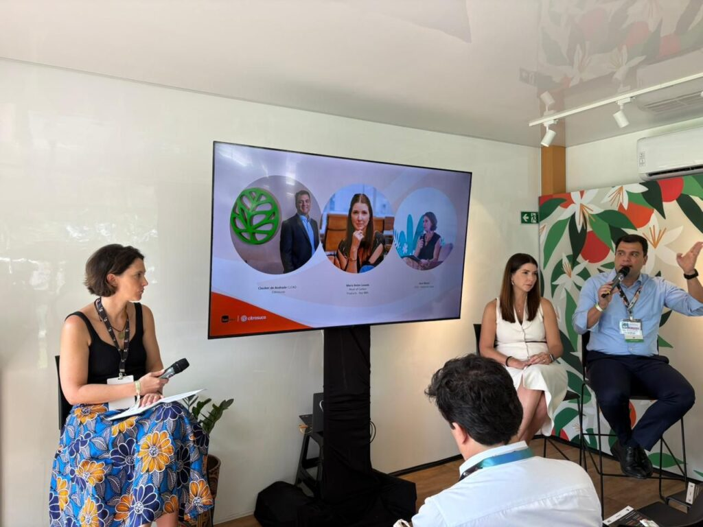 Ao longo da conferência, Ana Moeri moderou e participou de painéis estratégicos, como “Brazilian Citrus Program for Climate Adaptation” e Regeneração e Soluções Climáticas – O Potencial dos Biomas Brasileiros, ambos a convite da Citrosuco. “O Brasil tem um papel importante ao mostrar que regenerar áreas degradadas e adaptar paisagens produtivas é parte da solução global para o clima.”, disse.